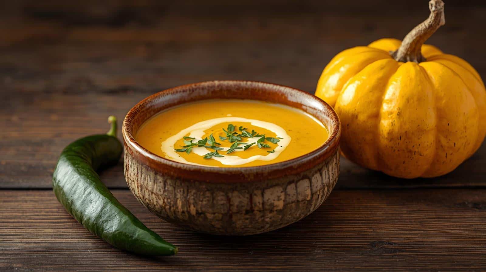 Oosterse pompoensoep, een heerlijke herfstige soep van pompoen (uit eigen tuin) met een pittige oosterse smaak van sriracha, gember, rode curry en kokosmelk. Een licht pittig soepje.