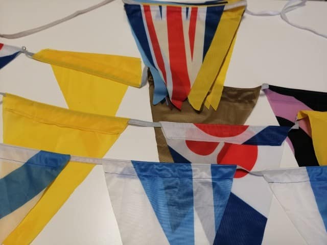Een vrolijke herbruikbare vlaggenlijn voor feestjes. Geen keuze mogelijk. Er wordt een vlaggenlijn uit de voorraad toegestuurd.